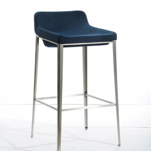 36″ Blue And Silver Stainless Steel Low Back Bar Height Bar Chair With Footrest