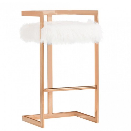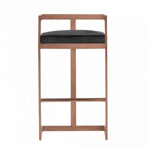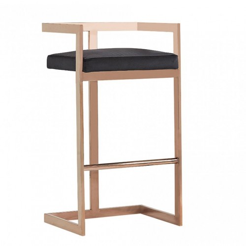 35″ Black Velvet And Rosegold Low Back Bar Height Chair With Footrest