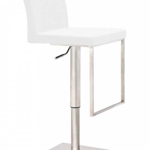36″ White And Silver Stainless Steel Low Back Bar Height Bar Chair With Footrest