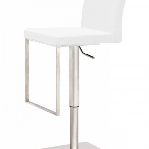 41″ White Faux Leather And Silver Swivel Adjustable Bar Chair With Footrest