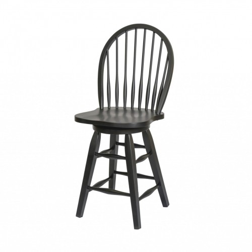 Adjustable Black Tufted Faux Leather and Black Wood Swivel Barstool.