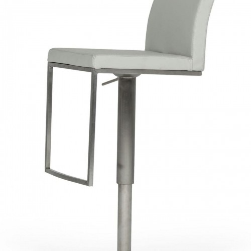 42″ Light Grey Faux Leather And Silver Swivel Adjustable Height Bar Chair With Footrest