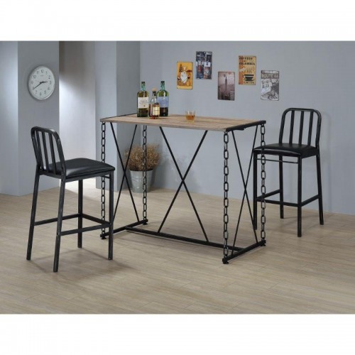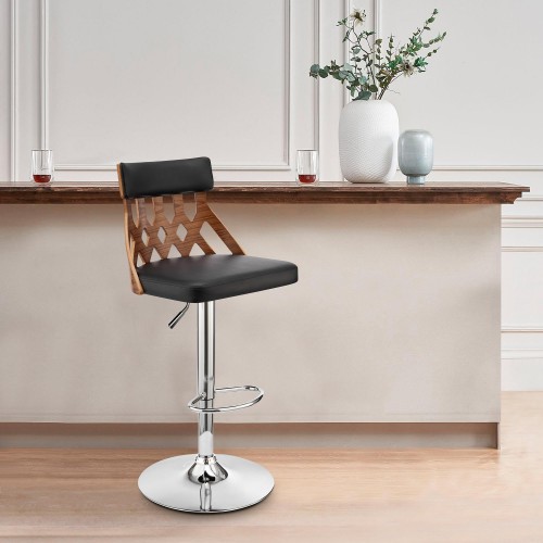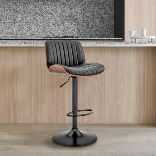 Adjustable Black Faux Leather Black Steel and Walnut Bar Stool