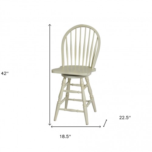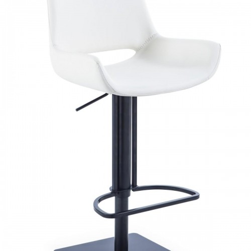 43″ White Faux Leather And Black Swivel Adjustable Height Bar Chair With Footrest