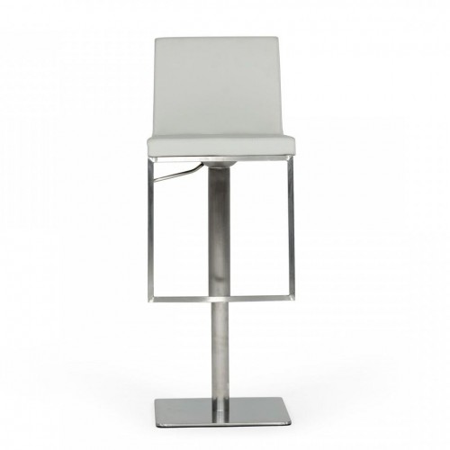 42″ Light Grey Faux Leather And Silver Swivel Adjustable Height Bar Chair With Footrest