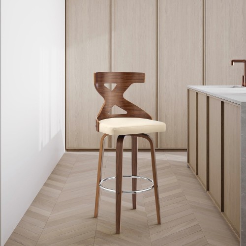 Gayle 30″ Swivel Cross Back Cream Faux Leather and Walnut Wood Bar Stool