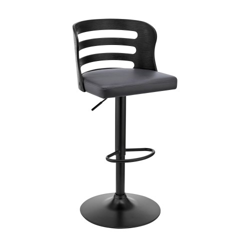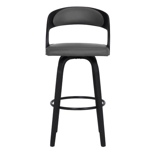 Gray Faux Leather Black Wood and Steel Adjustable Swivel Bar Stool