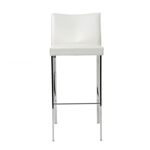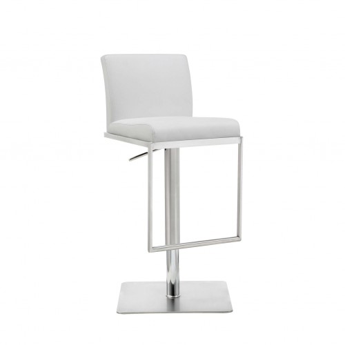White Faux Leather and Chrome Back Tufted Adjustable Bar Stool