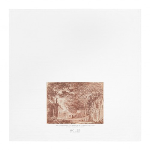 Kitchen Tea Towel, The Oval Fountain in the Gardens by Hubert Robert White 28″ × 28″