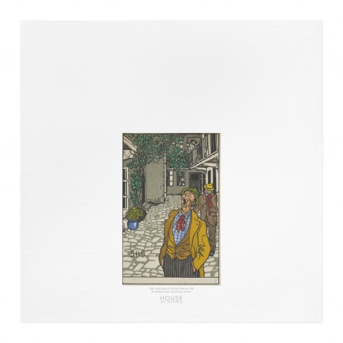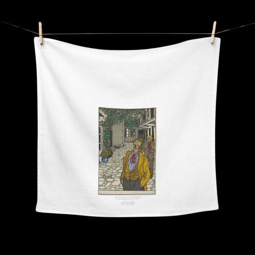 Kitchen Tea Towel, Viennese Café: The Man of Letters by Moriz Jung White 28″ × 28″