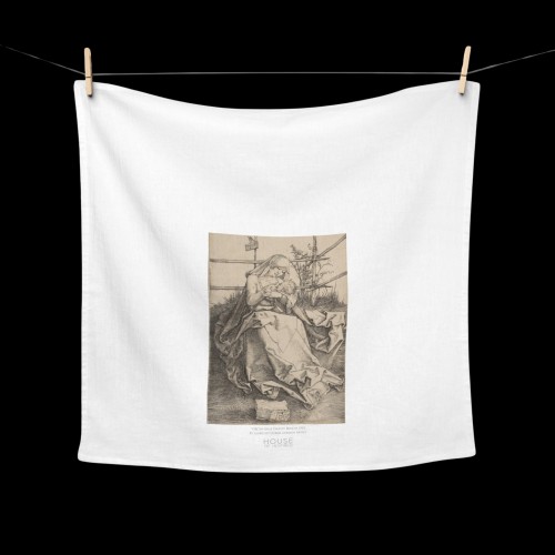 Kitchen Tea Towel, Virgin on a Grassy Bench by Albrecht Dürer White 28″ × 28″