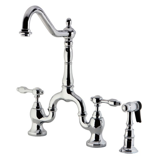 Kingston Brass KS7750TALBS Tudor Bridge Kitchen Faucet with Brass Sprayer OPEN BOX Polished Chrome