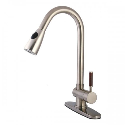 Kingston Brass Gourmetier Wilshire Pull-Down Spray Single Handle Kitchen Faucet Satin Nickel