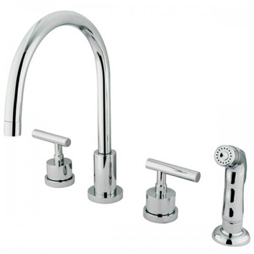 Kingston Brass Governor 8″ Deck Mount Kitchen Faucet with Brass Sprayer in Polished Chrome