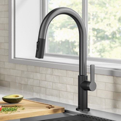 KRAUS Oletto Single Handle Matte Black & Black Stainless Steel Pull-Down Kitchen Faucet