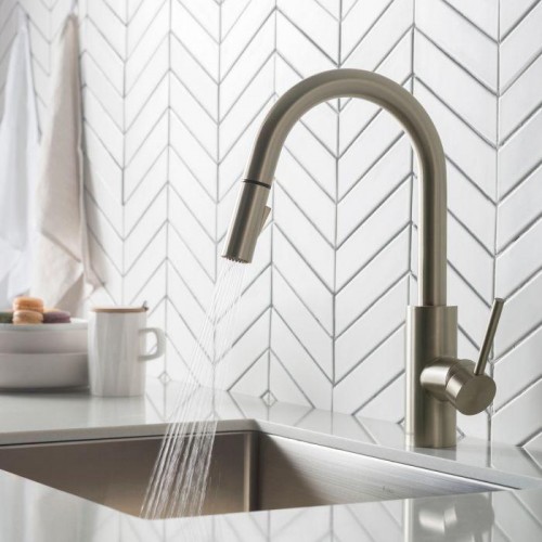 KRAUS Oletto Single Lever Pull Down Kitchen Faucet in Spot Free all-Brite Stainless Steel