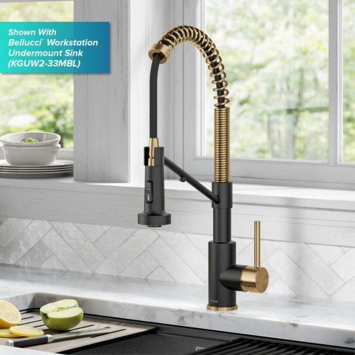 KRAUS Single Handle Kitchen Faucet with Integrated Dispenser for Water Filtration in Brushed Brass