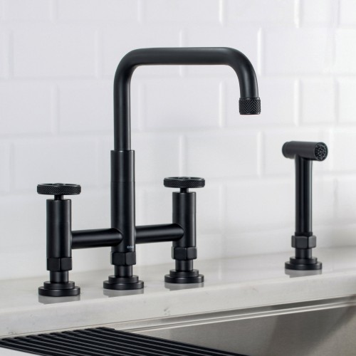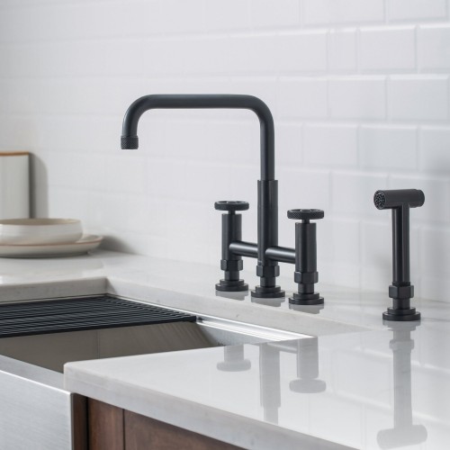 KRAUS Urbix Bridge Kitchen Faucet with Side Sprayer in Matte Black