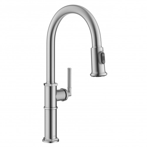 KRAUS Allyn Stainless Single Handle Kitchen Faucet with Diamond Cut
