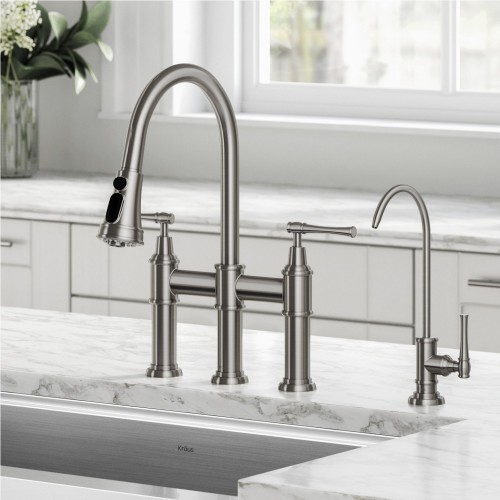 KRAUS Allyn Transitional Bridge Kitchen Faucet & Water Filter Faucet in Spot Free Stainless Steel