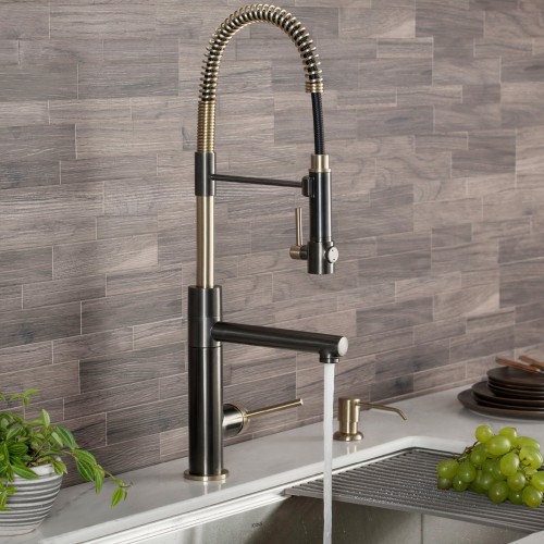 KRAUS Artec Pro 2-Function Commercial Style Pre-Rinse Kitchen Faucet in Black Stainless/Brushed Gold
