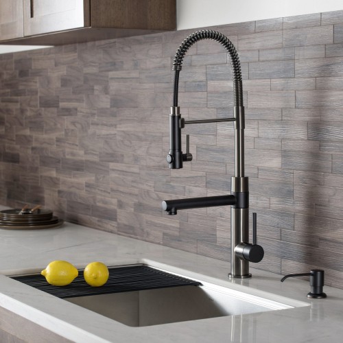 KRAUS Artec Pro 2-Function Commercial Style Pre-Rinse Kitchen Faucet in Matte Black/Black Stainless