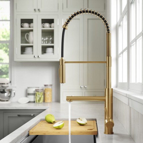 KRAUS Artec Pro 2-Function Single Handle Pull Down Kitchen Faucet in Brushed Brass