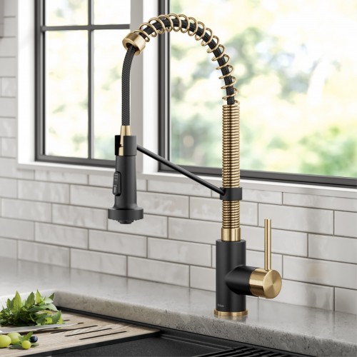 KRAUS Artec Pro 2-Function Single Handle Pull Down Kitchen Faucet in Brushed Brass & Matte Black