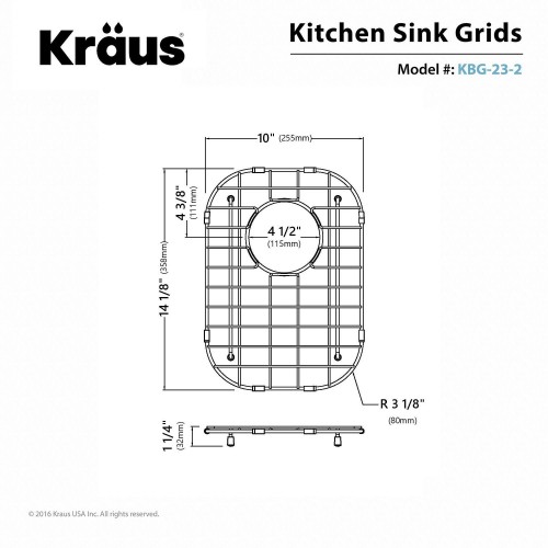 KRAUS Stainless Steel Bottom Grid with Protective Anti-Scratch Bumpers for KHF200-36 Kitchen Sink