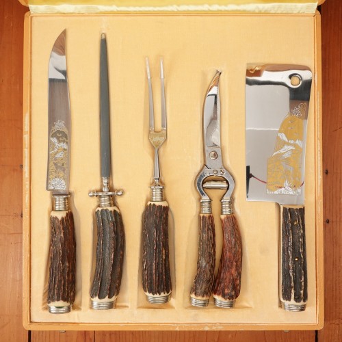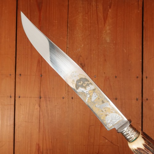 Eureka 9″ Carving Knife Carbon Steel Nickel & Stag USA Early 20th c