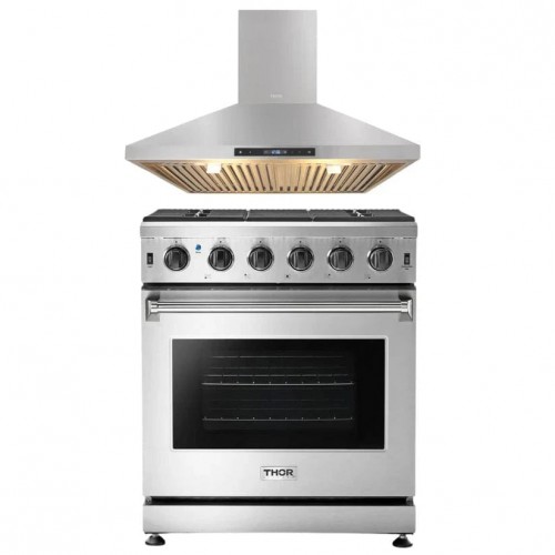 THOR Kitchen Appliance Package 2-Piece 30-Inch Gas Range, 30-Inch Range Hood, KAP-LRG3001U