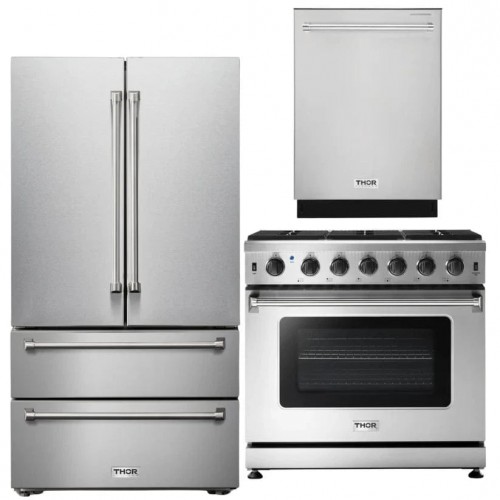 Thor Kitchen Appliance Package, 3-Piece, 36-Inch Gas Range, Refrigerator, Dishwasher, KAP-LRG3601U-2
