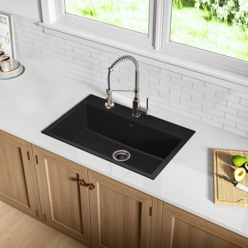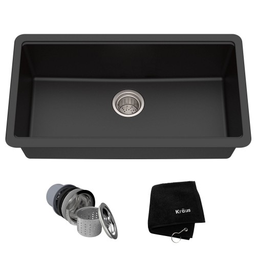 KRAUS 31″ Undermount Single Bowl Black Onyx Granite Kitchen Sink
