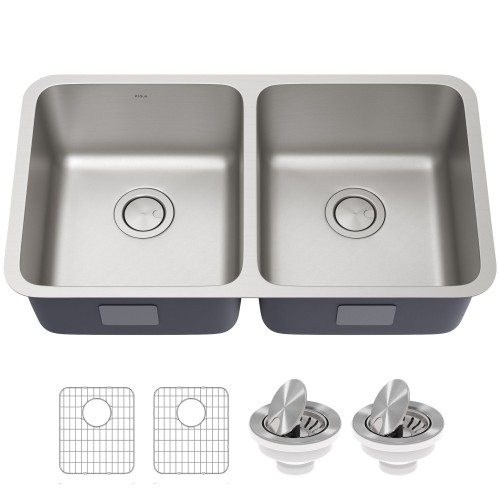 KRAUS Dex 33″ Undermount 16 Gauge Stainless Steel Double Bowl Kitchen Sink