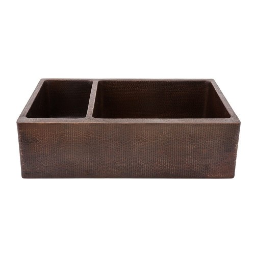 Premier Copper Products 33″ Hammered Copper Kitchen Apron 60/40 Double Basin Sink