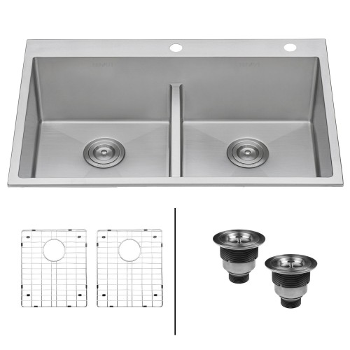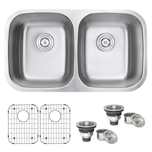 Ruvati 32″ Undermount 50/50 Double Bowl 16 Gauge Stainless Steel Kitchen Sink