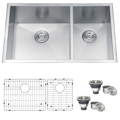 Ruvati 32″ Undermount 60/40 Double Bowl Zero Radius 16 Gauge Stainless Steel Kitchen Sink
