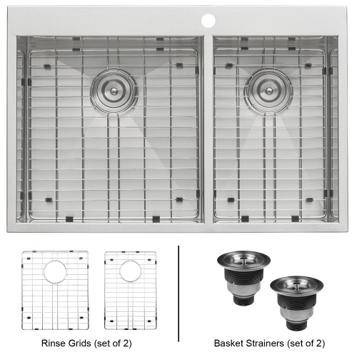 Ruvati 33 x 22″ Drop-in 60/40 Double Bowl 16 Gauge Zero Radius Topmount Stainless Steel Kitchen Sink