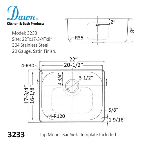 20″ Hand-Hammered Brass Dual Mount Bar Sink