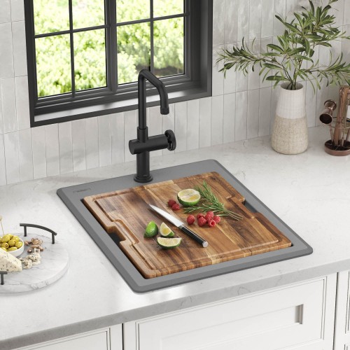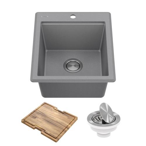 KRAUS 18” Drop-In Granite Composite Workstation Kitchen Bar Sink in Metallic Grey