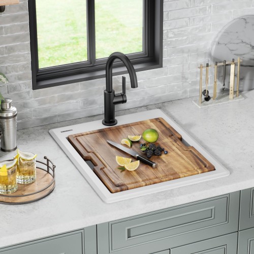 KRAUS 18” Drop-In Granite Composite Workstation Kitchen Bar Sink in White