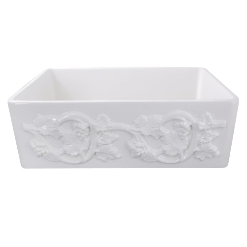 Nantucket Sinks 30″ Farmhouse Fireclay Sink with Grapes Apron