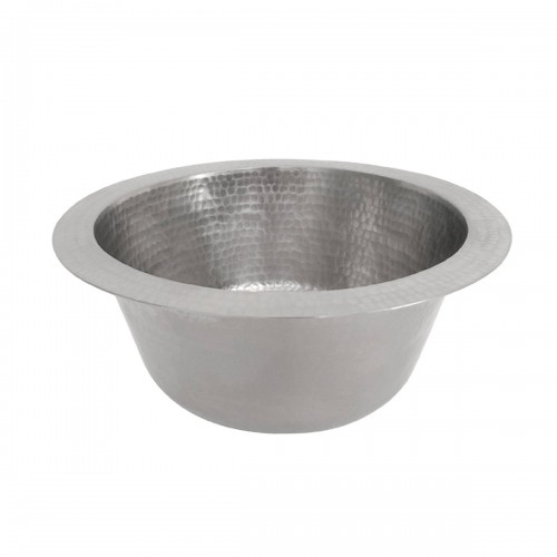 Premier Copper Products 14″ Round Hammered Copper Bar Sink in Nickel with 2″ Drain Size