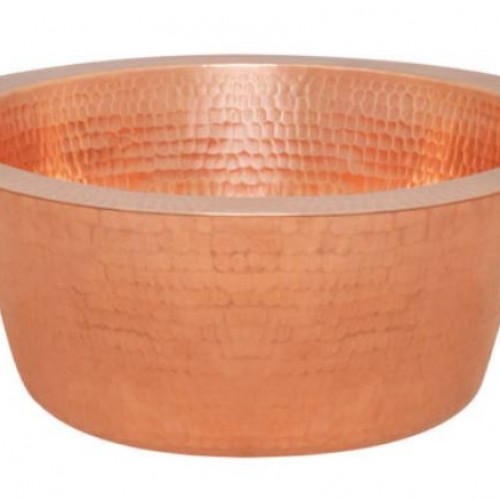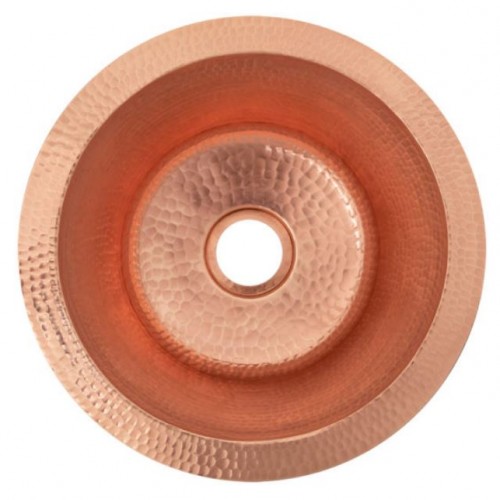 14″ Round Hammered Copper Bar Sink with 2″ Drain Opening in Polished Copper