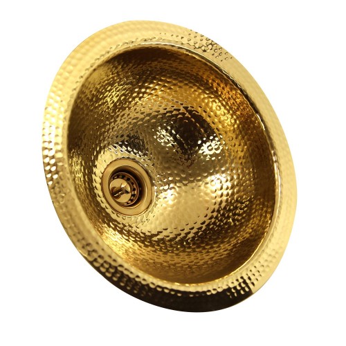 12″ Round Hammered Copper Bar Sink with 2″ Drain Opening in Polished Copper