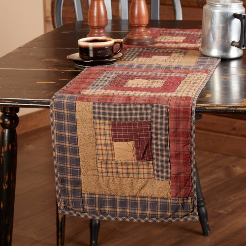 Millsboro Log Cabin Patch Burgundy Navy Tan Country Chair Pad 14×14 – VHC Brands