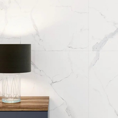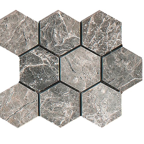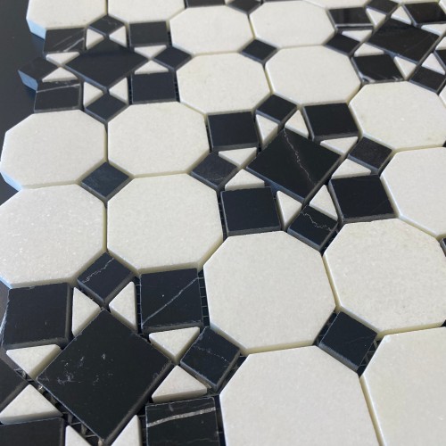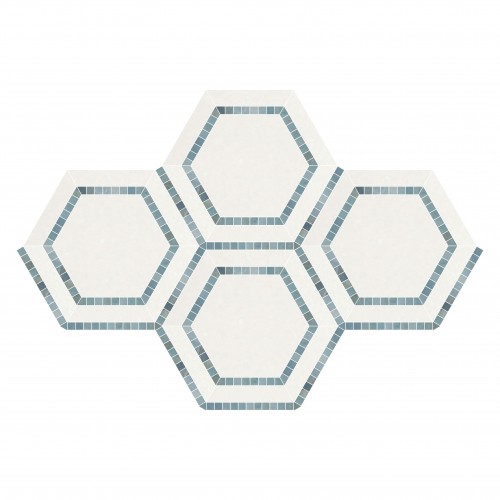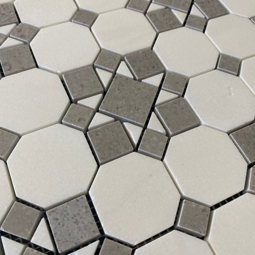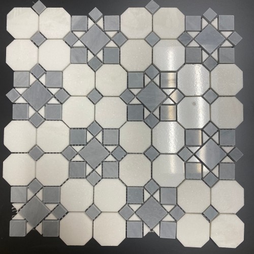Thassos White Polished Octagon Patio w/ Blue – Grey Mosaic Tile