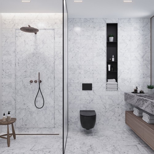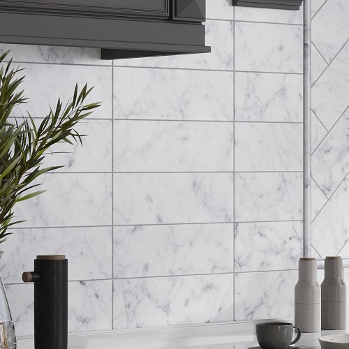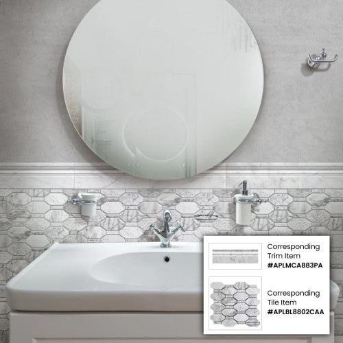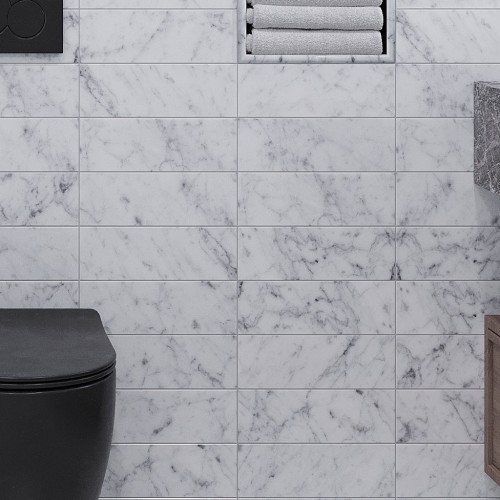 White 4×12 Bianco Carrara Polished Baseboard Marble Tile Trim (10 pack, 3.33 sq ft/case) Full