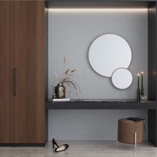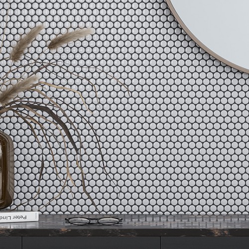 Ivory Beige 12×12 Glossy Penny Round Porcelain Mosaic Tile (10 pack, 9.87 sq ft/case) Full