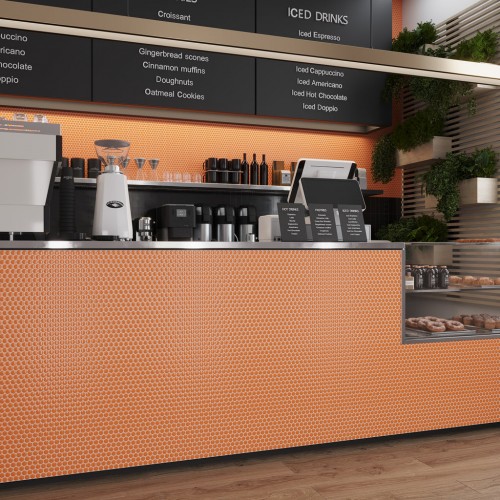 Orange 12×12 Glossy Penny Round Porcelain Mosaic Tile (10 pack, 9.87 sq ft/case) Full